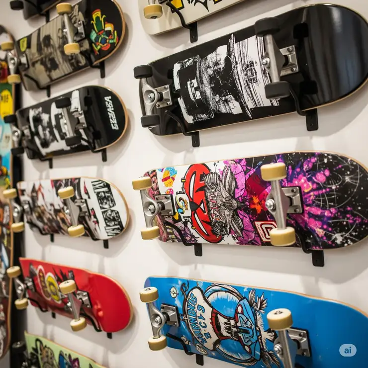 Quality skateboard wall mount systems range from $15 for basic options to $200+ for premium multi-board systems. However, this investment pays dividends through: